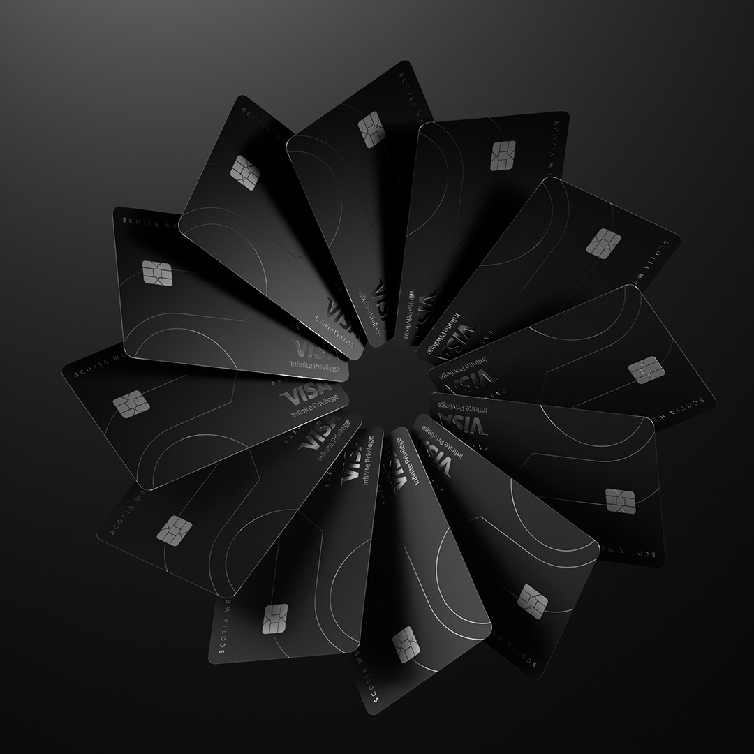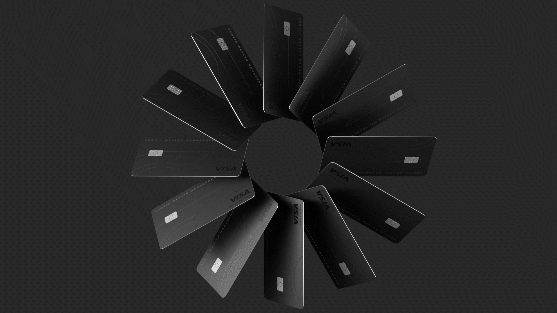 Available to Private Banking clients of Scotiabank, the Visa Infinite Passport credit card is crafted from metal with etched text and a refined look. As part of the in-house team at Scotia, I created a series of still images and motion pieces to drive awareness and excitement for the card. The card and packaging were brought to life in 3D based off the real products.